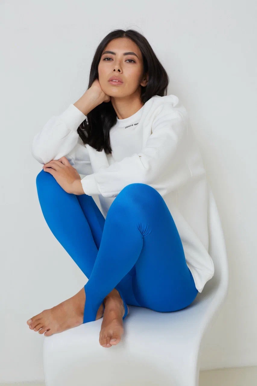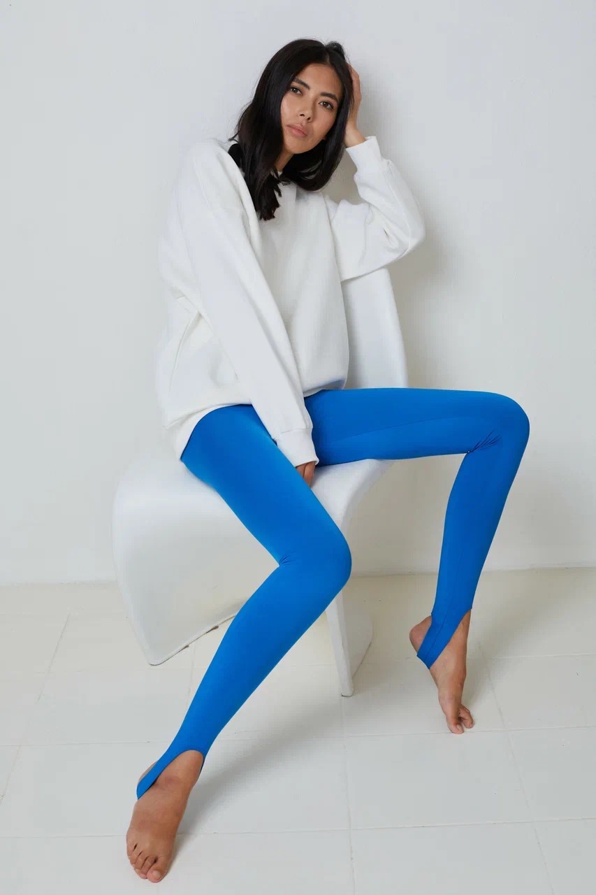 Легинсы выполнены в двух трендовых оттенках: базовый дымчато-черный и ультрамодный электрик.